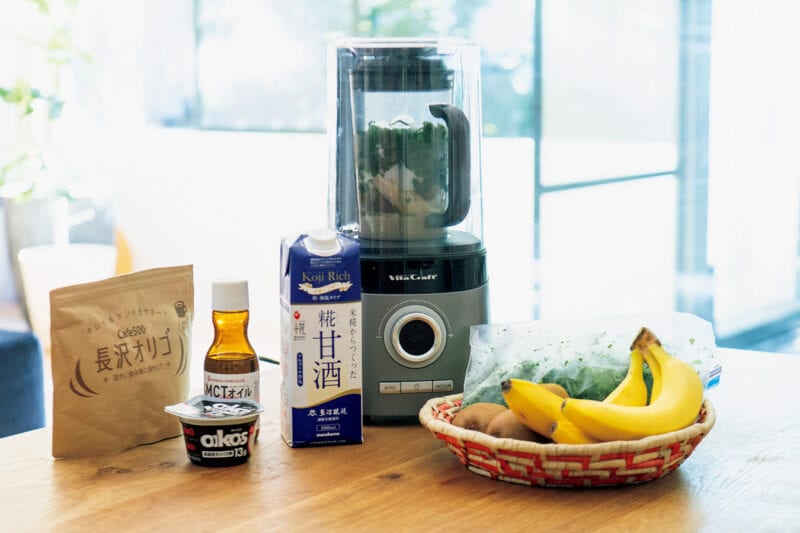 野菜、フルーツたっぷりの糀甘酒のスムージーが朝食の習慣