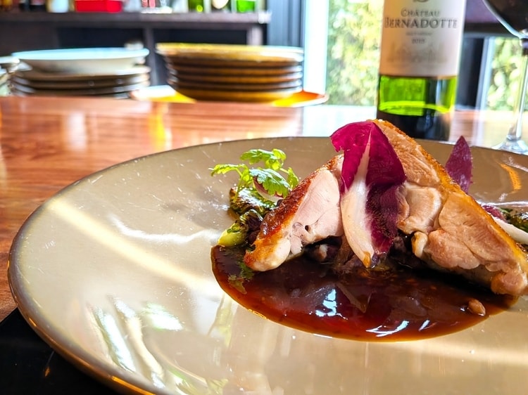 この日のランチコースで登場した『~Viande~ 薩摩純然鶏のロースト ジンジャーバルサミコのアクセント』