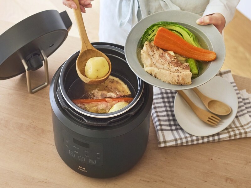 BRUNOが2月24日に発売した「デイリー圧力クッカー」は、手軽に本格料理が作れる電気圧力鍋。限られたスペースにも収まりやすいサイズです。