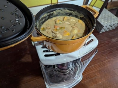さらにこの灯油ストーブのお気に入りポイントは、部屋を暖めながら、天板で料理が出来るということ。冬は煮込み料理が美味しい。ぬくぬくの部屋で、シチューやおでんがじっくりコトコト煮込まれていくのを見届けるこの幸福感たるや堪らない…! 濡れたキッチンペーパーとアルミホイルでくるんだサツマイモを、これまたじっくり焼いて焼き芋にするのも良し。オーブンレンジで焼くのとは違う、ほっくり甘々に仕上がるのだ。 他にも、干し芋を炙ったり、果ては煎餅やクッキーまで温めたりする。暖かい部屋で温かくて美味しいものを食べる…これが冬ならではの楽しみなのだ。