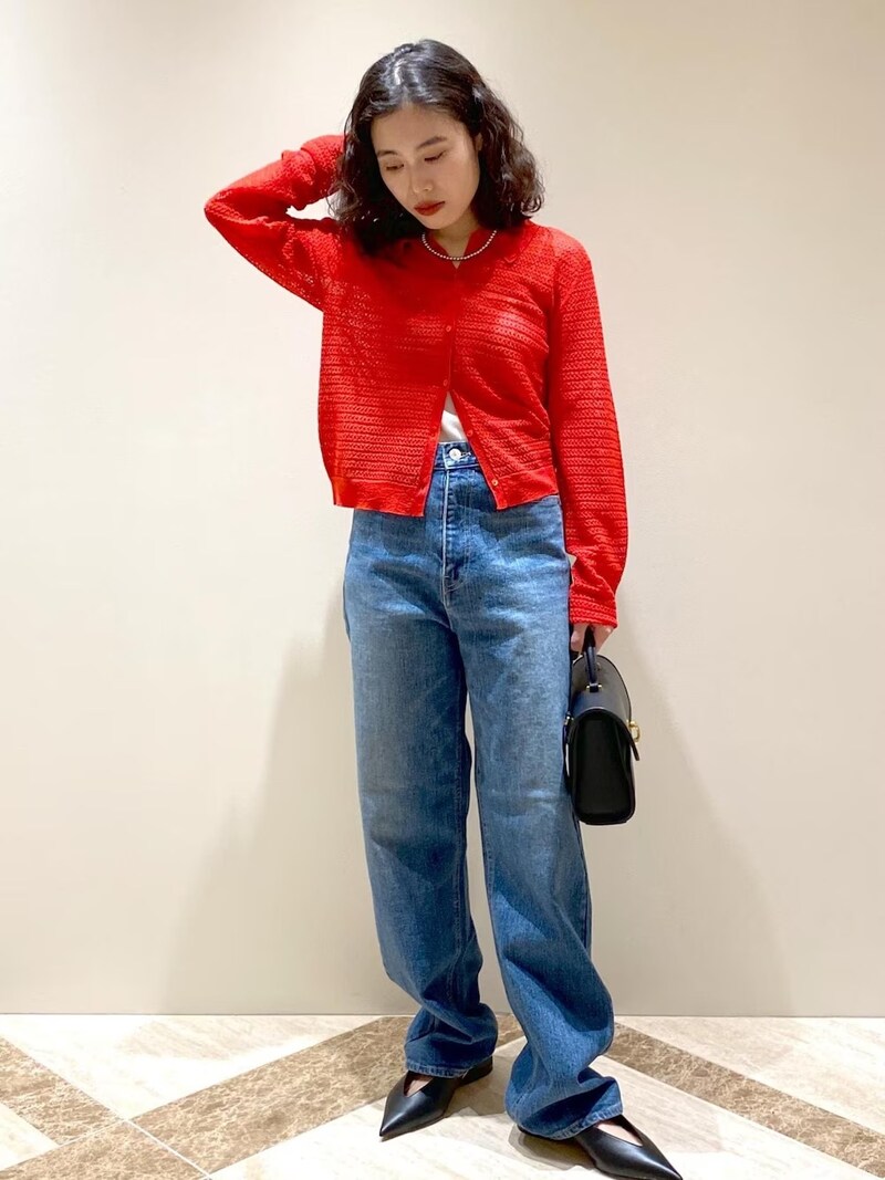 ジャストサイズのシンプルなカーディガンは、着こなし次第でスタイルアップが叶うアイテムとしても使えます。