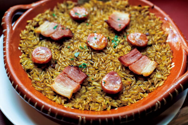 「アロース・デ・パト・ノ・フォルノ」198 MOP。鴨肉の濃厚なスープで炊き上げた風味豊かなごはん。