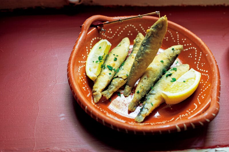 「ペティンガス・フリタス(小イワシのフライ)」5個68 MOP。釣り上げられてい