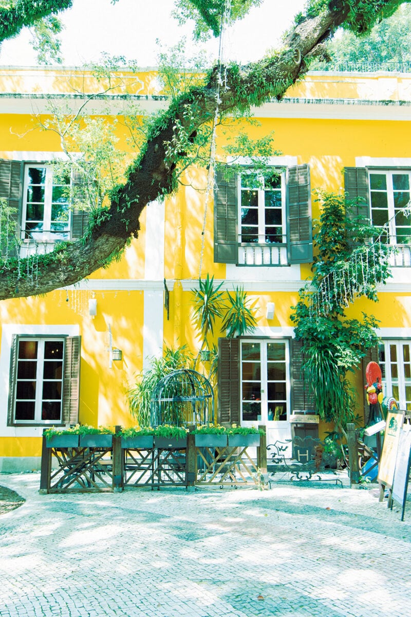 ラザロ地区の中心部に佇む築100年超の建物を活用。店内には、ポルトガルに伝わる幸運のシンボル「ガロ(雄鶏)」の置物が並ぶ。