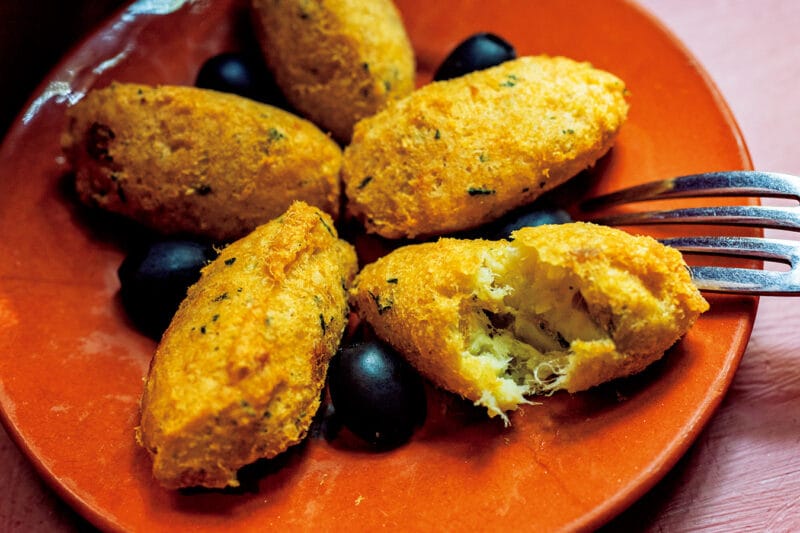 「パスティス・デ・バカリャウ(干しダラのコロッケ)」5個108 MOP。