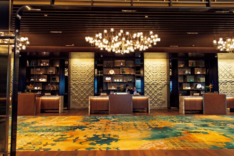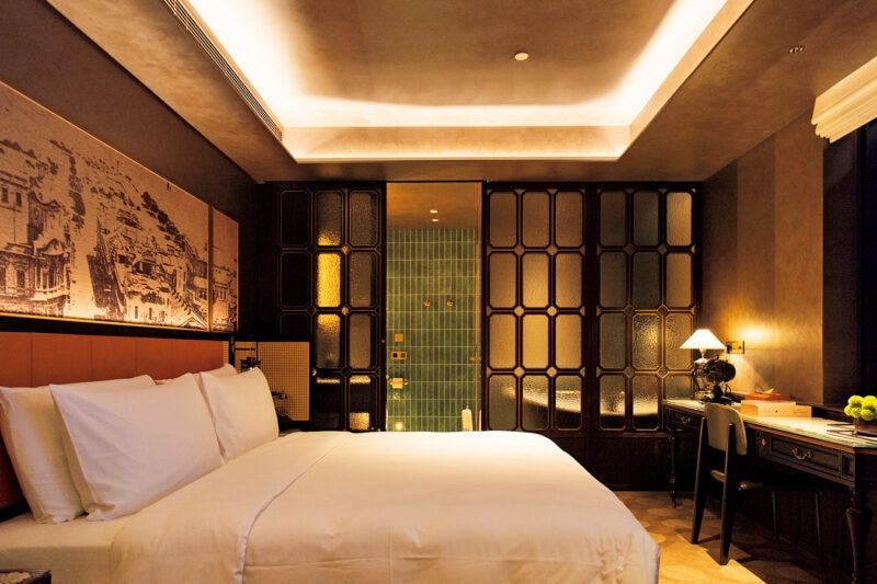 中国の伝統美に西洋のアールデコを融合させたシノワズリ調の客室や、約4,000冊のビジュアルブックが並ぶラウンジが非日常へと誘ってくれます。