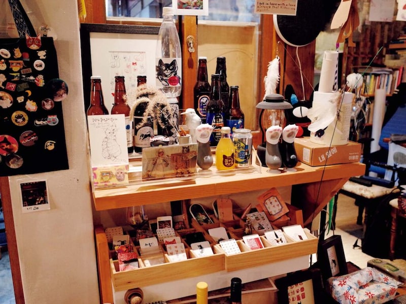 世界中から集めた猫の本や雑貨が所狭しと並び、リトルプレスも豊富に揃う。