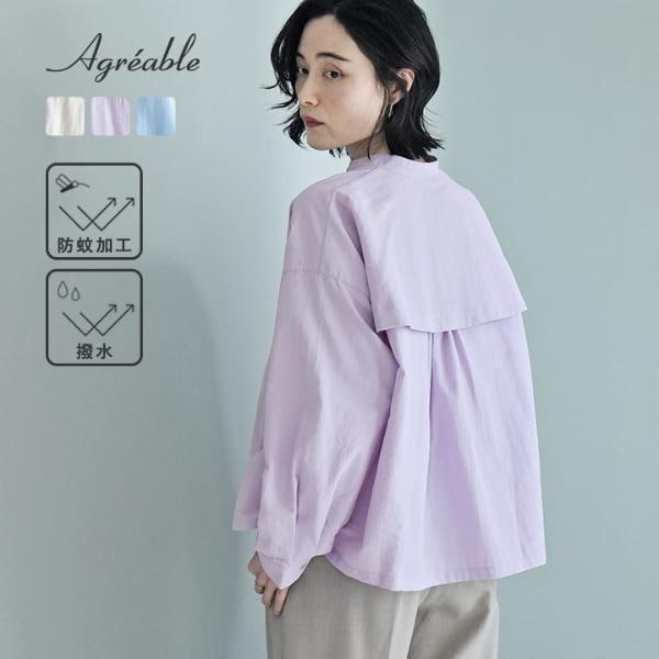 羽織りにもなる 後ろメッシュ バンドカラーシャツ 防蚊 撥水/Agreable アグレーアーブル【送料無料】