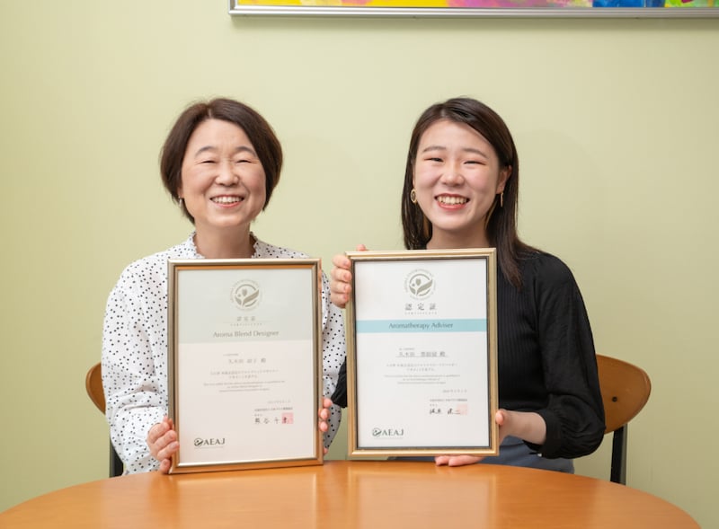 出迎えてくださったのは、Le Ciel Fusée代表でアロマテラピーアドバイザーの久木田紫絵留(しえる)さんと、紫絵留さんのお母様でアロマブレンドデザイナーの久木田政子さん。Le Ciel Fuséeさんは、親子で運営されているんです!