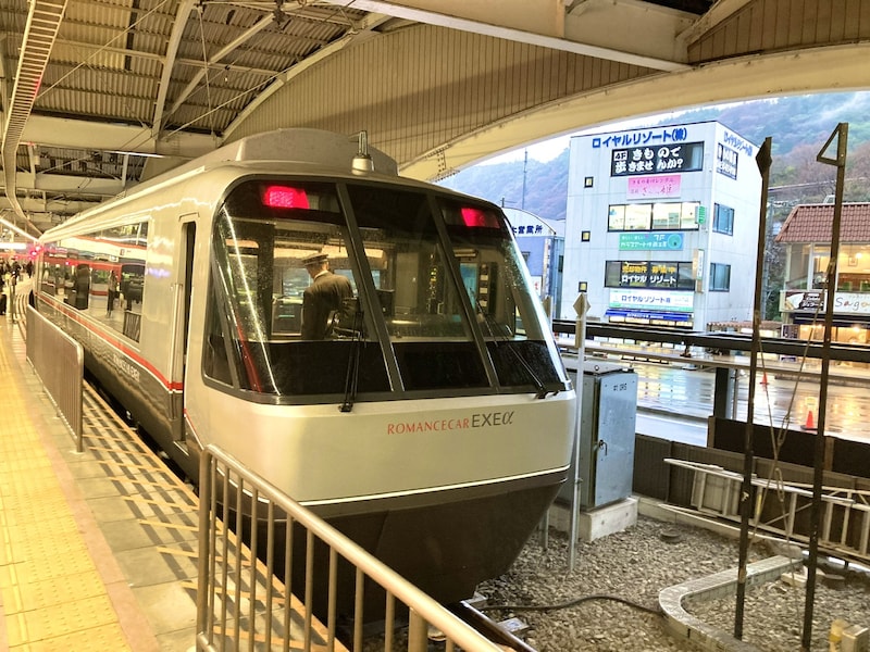 発表会会場の最寄り駅は箱根湯本駅ですが、新宿駅から小田急ロマンスカーで約1時間半の旅であっという間に到着しました。