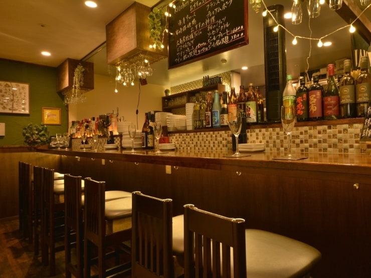 駅からほど近いビルのB1Fにあるお店は、都会の喧騒を忘れることができる隠れ家のよう。上品な色合いでまとめた店内は、気取らず過ごせるカジュアルな雰囲気です。デートなら、寄り添って座れるカウンター席がオススメ。テーブル席は半個室のようなつくりなので、ゆったりとくつろぐことができます。