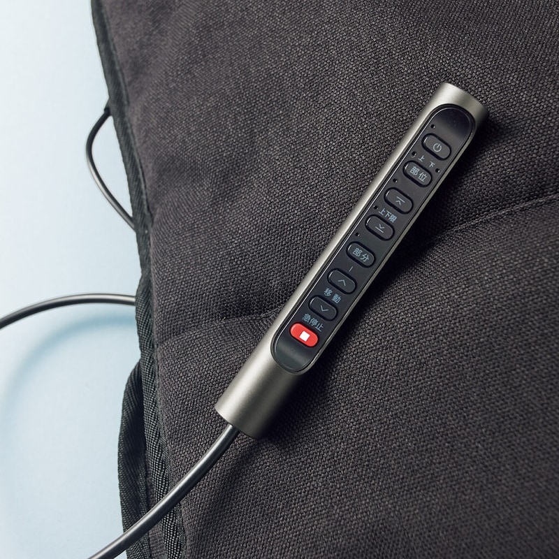 操作はリモコンで。モードは一つ、10分間で自動停止。部位(3種類)の変更、各部位から10㎝の上下移動などができる。「新色のオールブラックはスタイリッシュでいいですね。リモコンのコードがもう少し長かったら、寝そべりながら操作しやすくて嬉しいです」。厚さは約4㎝。ダークグレー、グレー含む全3色。約2.5㎏ ¥24,970(ドクターエア 0120−05−8000)