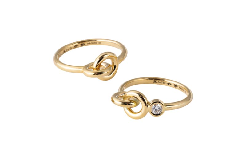 昨年、東京・青山に、世界最大級のラインナップを誇る日本初のフラッグシップストアをオープンした〈シャルロット シェネ〉。ブランドらしい曲線の造形美を堪能できる「ツイン リング」は、イエローゴールドの2つの円が知恵の輪のように繋がったつくり。一粒のダイヤモンドがセットされたタイプも展開する。