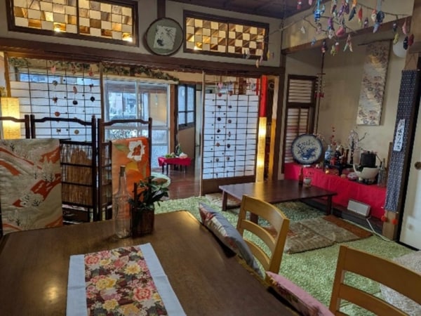隠岐に古くからある和菓子屋「秀月堂」さんが営む、趣のある古民家カフェ。その佇まいは、田舎暮らしに憧れる女子なら 絶対好きになるヤツ。 店内には、色とりどりの帯や花、ちりめん細工があしらわれ、 純和風だけどモダン。可愛らしくも華やかで、温かみを感じる空間。 店主のセンスと細やかな気配りが光る、まさに 癒しのカフェ なのである。