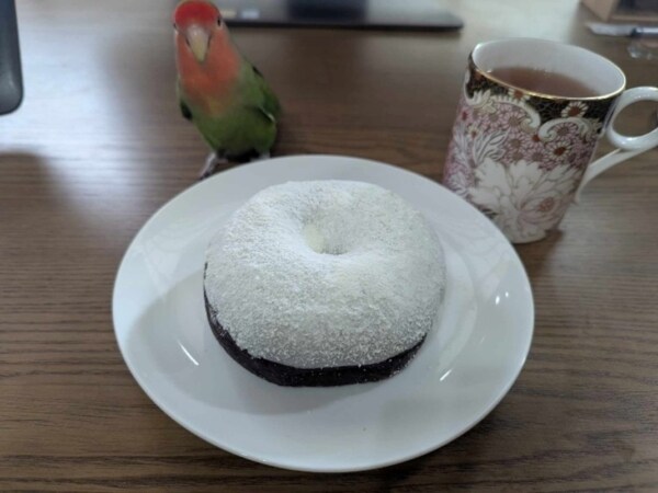 抹茶ドーナツの代わりに買って来た冬期限定ドーナツ『パウダースノー』ココア味のドーナツにホワイトチョコパウダーがかかっていて、とても美味でした♪