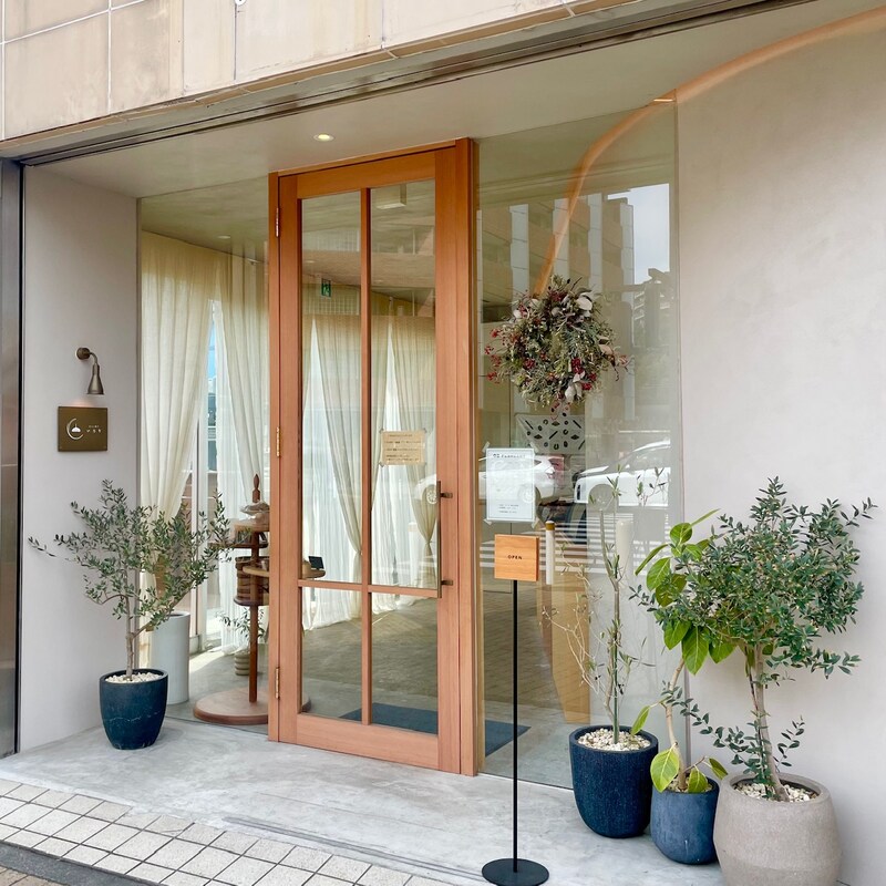 横浜市営地下鉄グリーンライン「北山田」駅改札を出て右手に1分ほど歩くと、店内が覗けるガラス貼りに大きな木枠のドア、グリーンが出迎えてくれる瀟洒なお店が現れます。