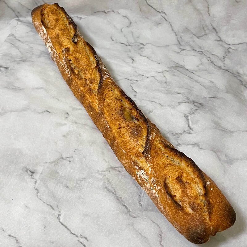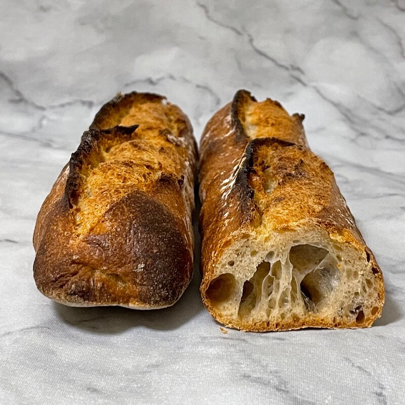 群馬県産上原ファームさんの農林61号、三重県産&北海道産小麦を使用し、低温長時間発酵させたバゲット。