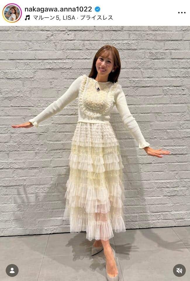 2025年3月末にNHKを退局し、フリーアナウンサーに転身した中川安奈さん(32)が2026年1月16日、自身のインスタグラムを更新。ブラウンのロングワンピショットを披露した。