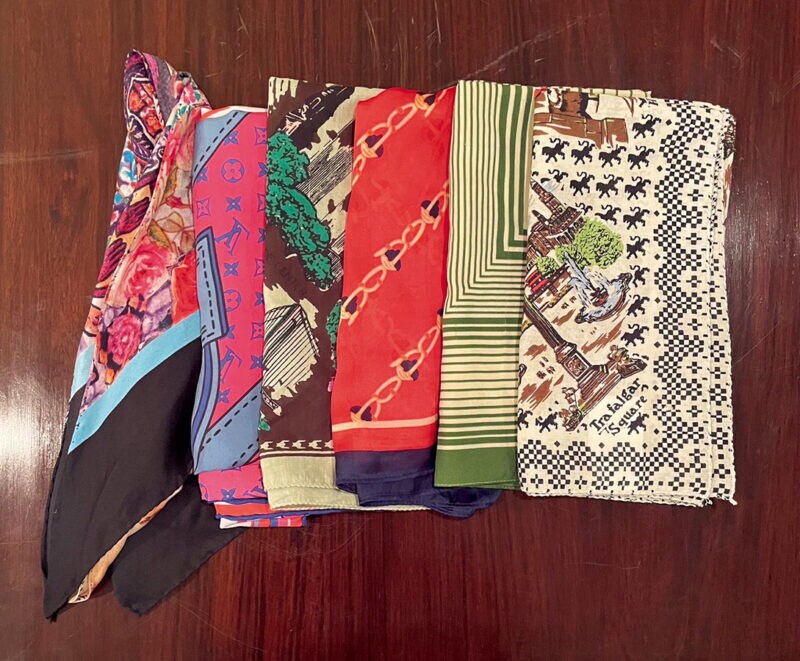 スカーフを巻くとラクで、可愛い柄に出合ったら買い足していますね。
