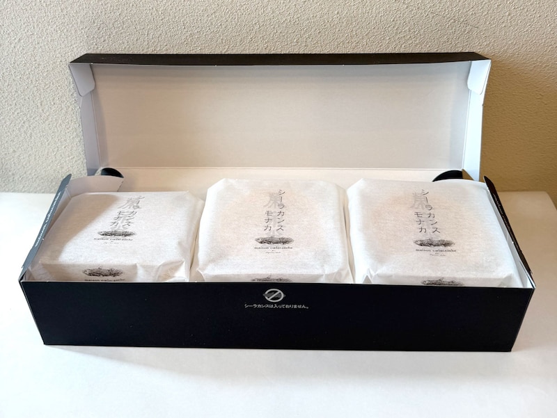 シンプルで洗練されたパッケージに添えられた「シーラカンスは入っておりません」の一文も、思わず手に取りたくなる遊び心ですね。