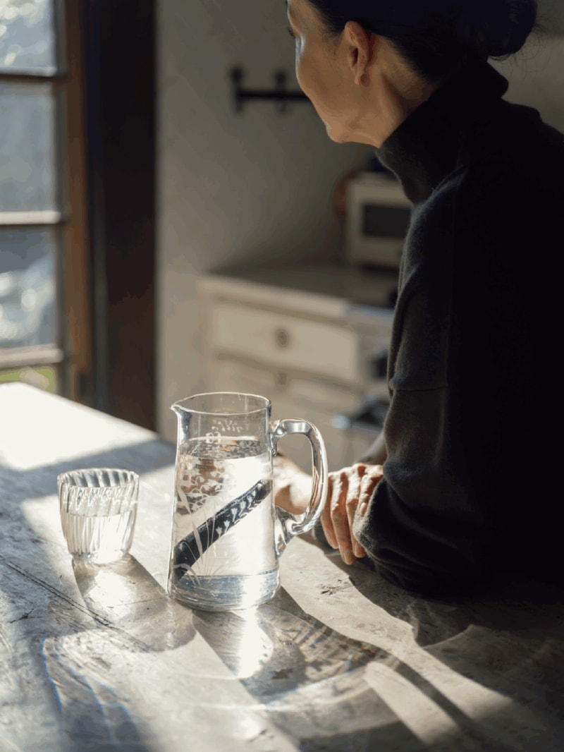 そして、炭の使い道は七輪だけにとどまりません。ピッチャーの水に備長炭を入れておけば、無数にあいた穴が不純物や塩素を吸着して、まろやかな味に。