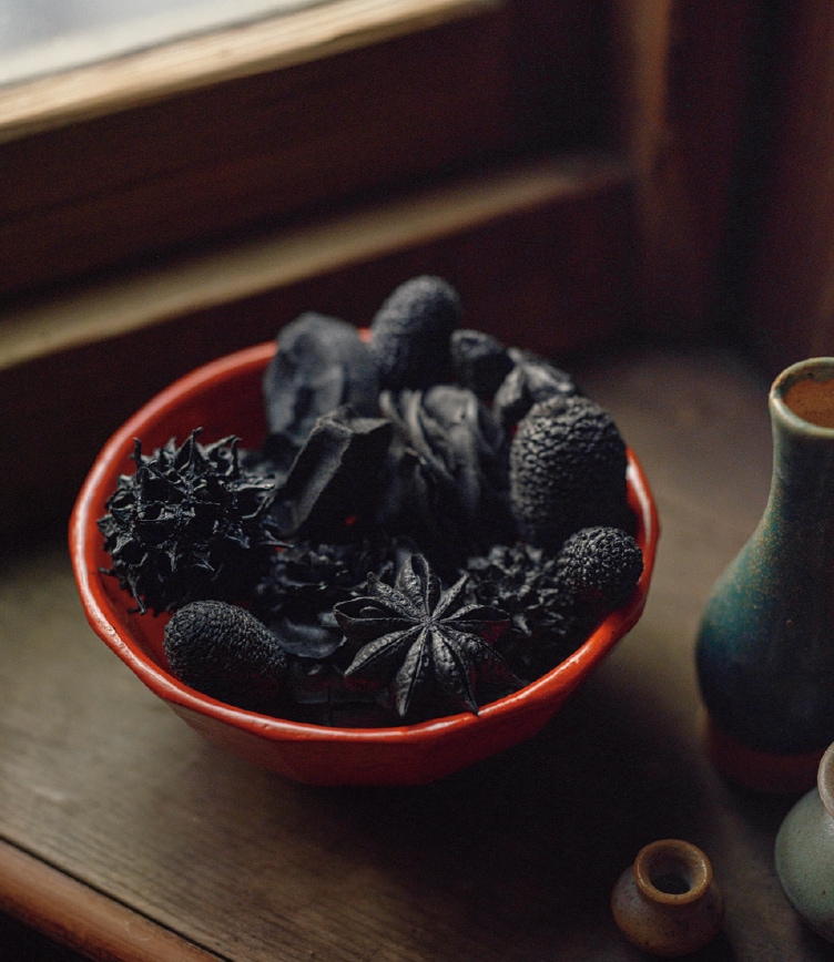 玄関やトイレなどの小さな場所に置くなら、花や木の実をそのまま炭化させた「花炭」も役立ちます。