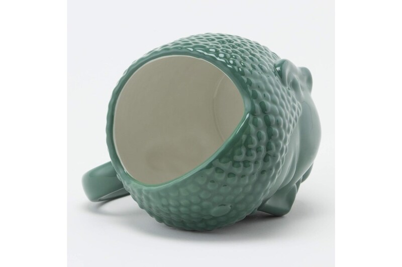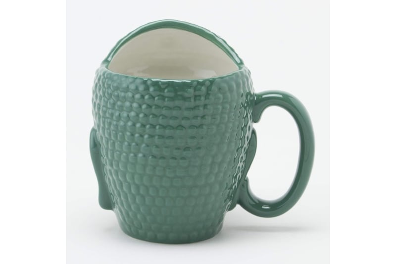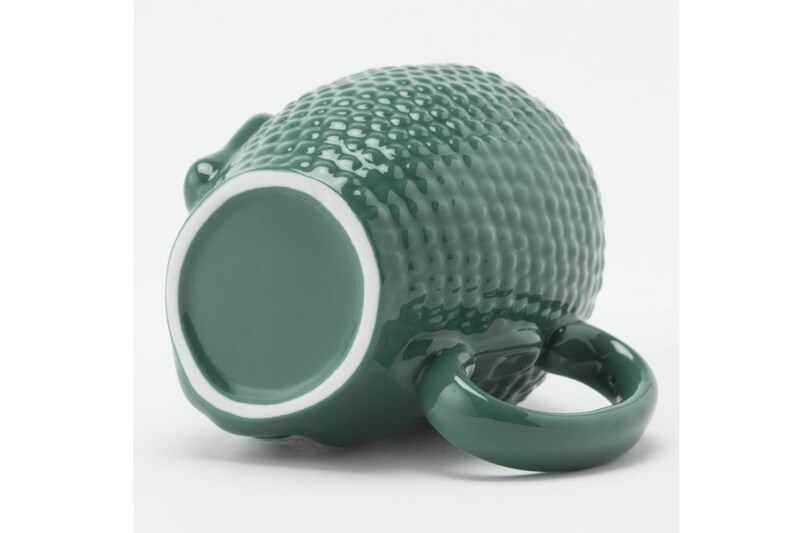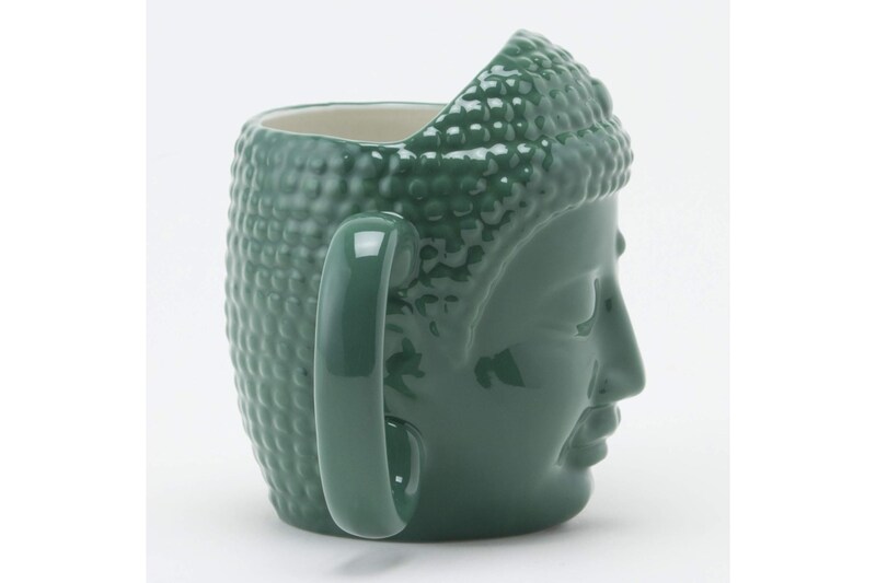 緑色の陶器で作られた、大仏の顔をそのままデザインにしたマグカップです。