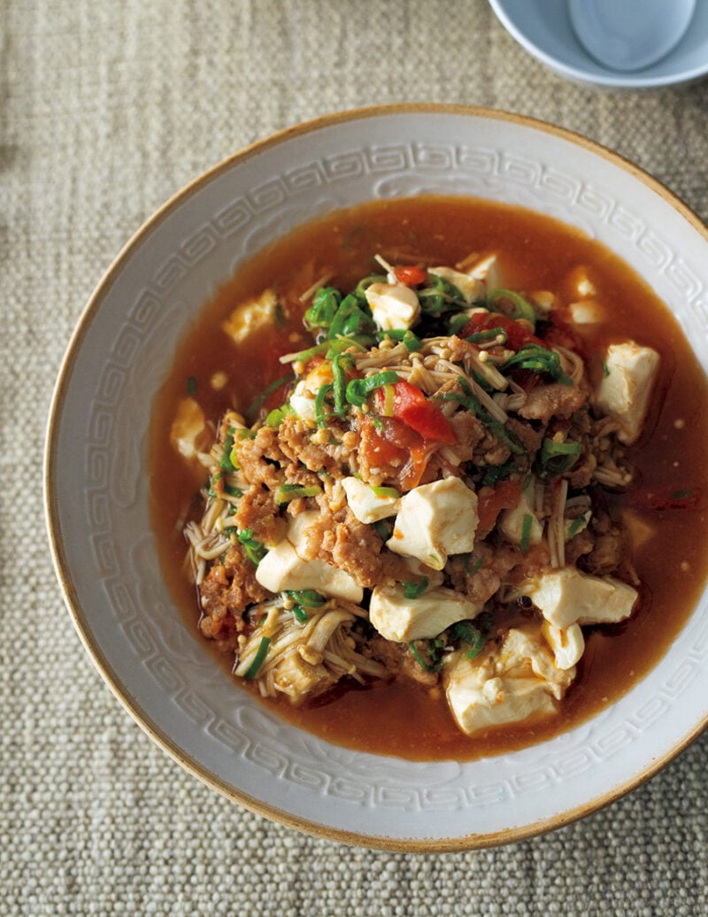 トマトの酸味とえのきの歯応え技ありの麻婆豆腐