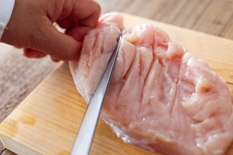 鶏むね肉には斜めに切れ込みを