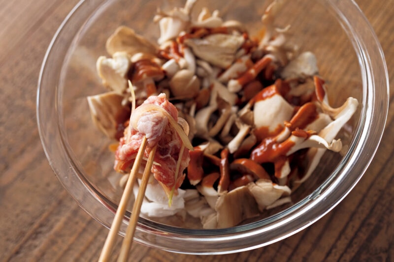 さらにまいたけのマイタケプロテアーゼが豚肉の繊維を壊すことで味が染み込みます。