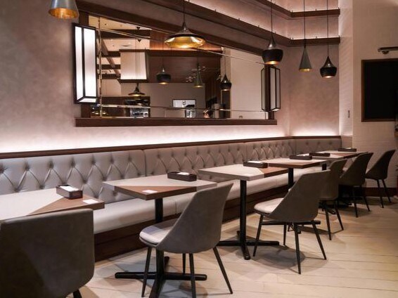 程よい賑やかさとモダンな設えが心地よく、カジュアルにくつろげる空間