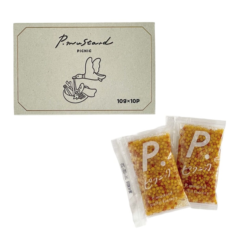 「ピッ」と使えて「プチッ」とはじける「パッ」と楽しいからピプパ。P.マスタードはリンゴ酢の爽やかさと隠し味の醤油が万能ぶりを発揮する粒マスタード。2025年からは使い切りタイプが登場して、その名のとおりピクニックなどにも持っていける便利さが加わった。「納豆メーカーとのコラボレーションで、中に入っている小さいカラシのイメージで作ったもの。想像以上に使い勝手がいいと気がついて」と店主の栗屋野浩樹さん。納豆がきっかけとは意外だったものの、便利なものができて結果オーライである。取り扱いは『京都市京セラ美術館ミュージアムショップ・アートレクタングル京都』などでも。10g × 10袋702円。