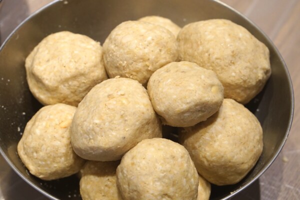 味噌玉 ぎゅっと丸めてボール状に。ハンバーグを成形する要領で空気を抜きつつ丸めます。