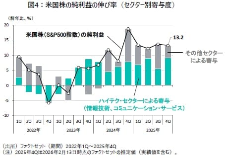 2025年第4四半期の純利益は、前年比約13%の高い伸びを維持する見込みです。利益成長をけん引しているのは引き続きハイテク・セクターですが、幅広いセクターに利益回復が広がる兆しもみられます(図4)。