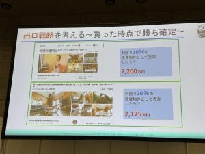 民泊として安定した売上が生まれれば、その物件は「収益物件」として価値が上がる。例えば利回り50%の物件を、利回り20%の収益物件として売却すれば、収益還元法で換算した場合、初期投資の数倍の価格で売ることも十分可能というわけだ。