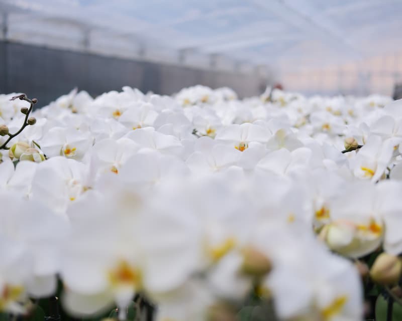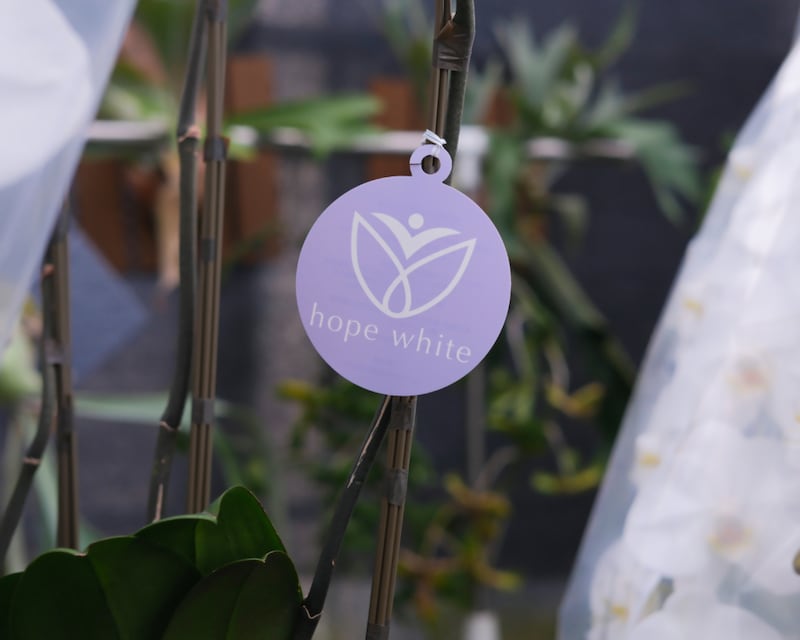 「希望」の名を冠した胡蝶蘭が並ぶ美しい職場