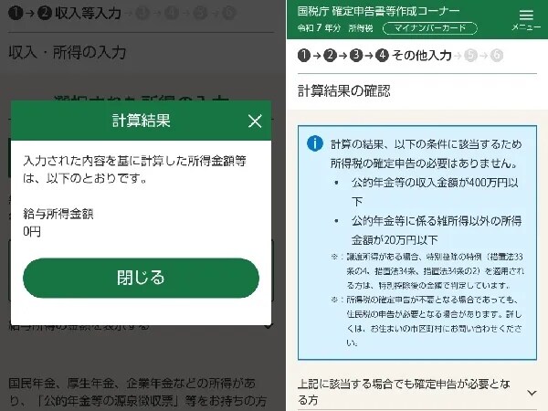 私の場合は、この計算をすると所得が0円になり、個人年金の所得と合わせても「基礎控除(48万円)」の枠内にしっかり収まりました。