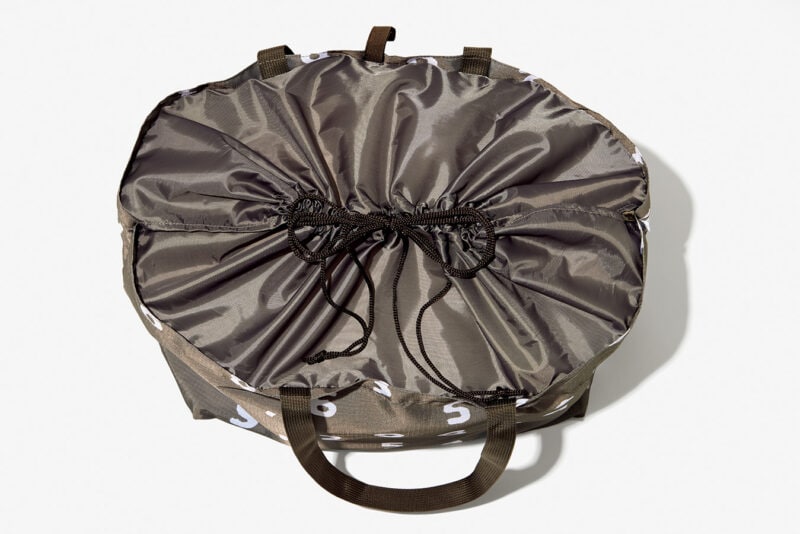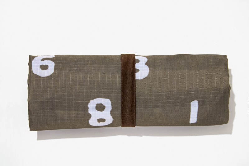 本体は軽くて丈夫なリップストップ生地、ゴムベルト付きなのでたためばコンパクトになり、持ち運びにも便利。