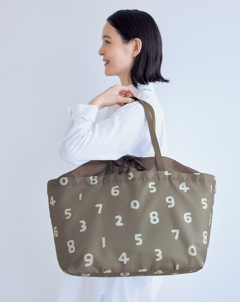 上品なブラウンに人気の数字柄「SO-SU-U」柄をデザインした、ユニセックスで使えるおしゃれな大容量の特大バッグです。