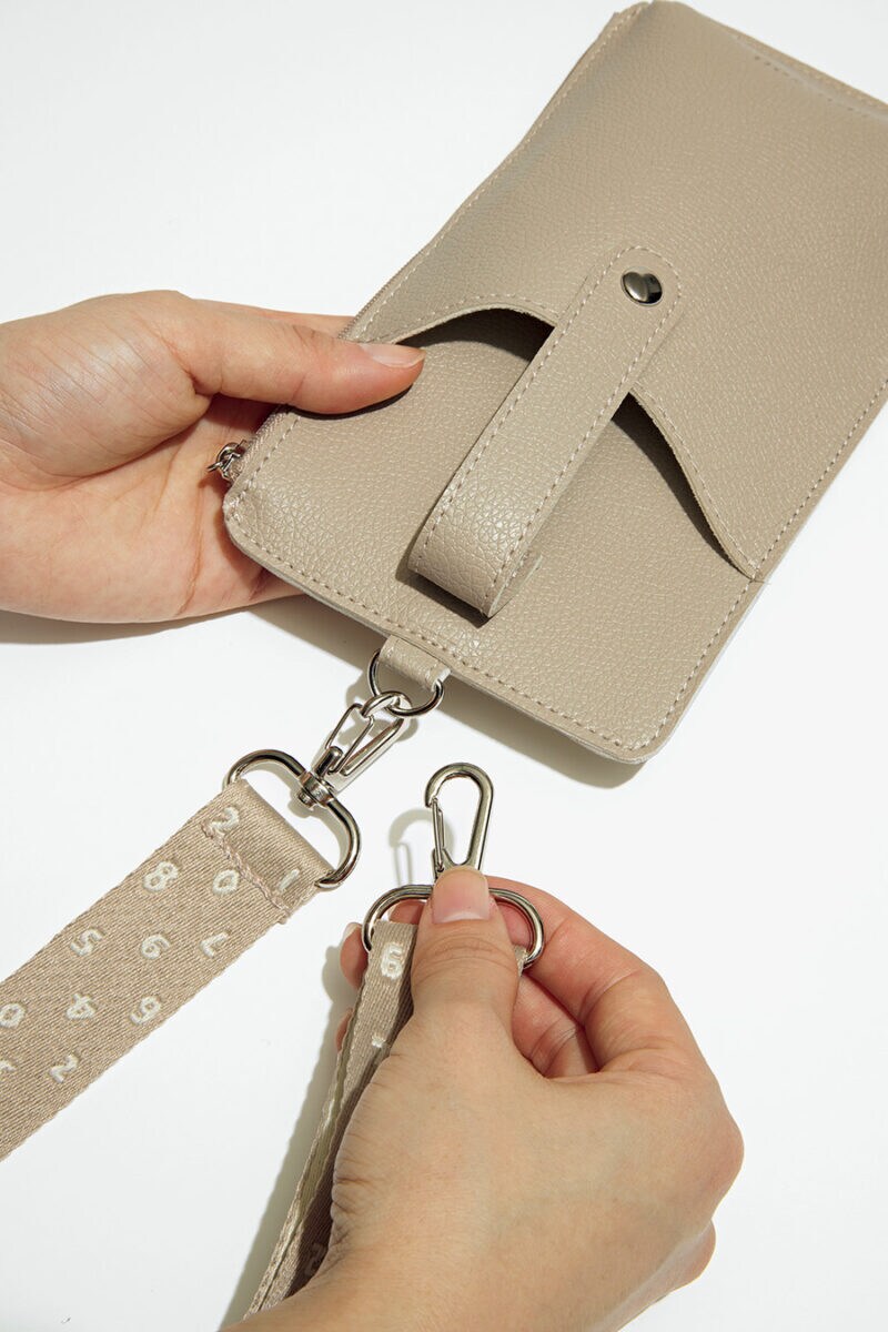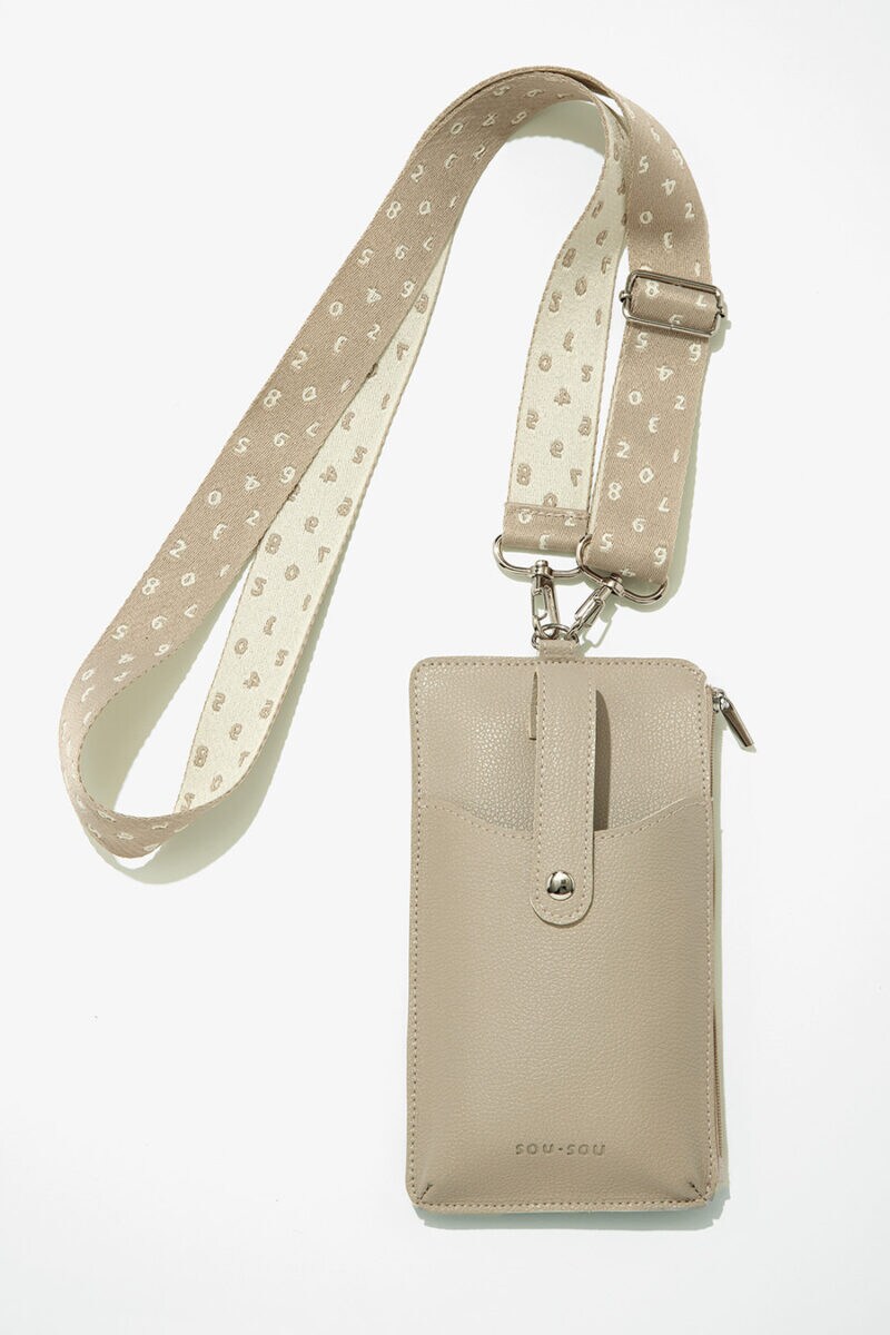 隠しポケット付きで小物収納も◎。ストラップは取り外し可能だから、手持ちのスマホケースなどにも合わせられます。