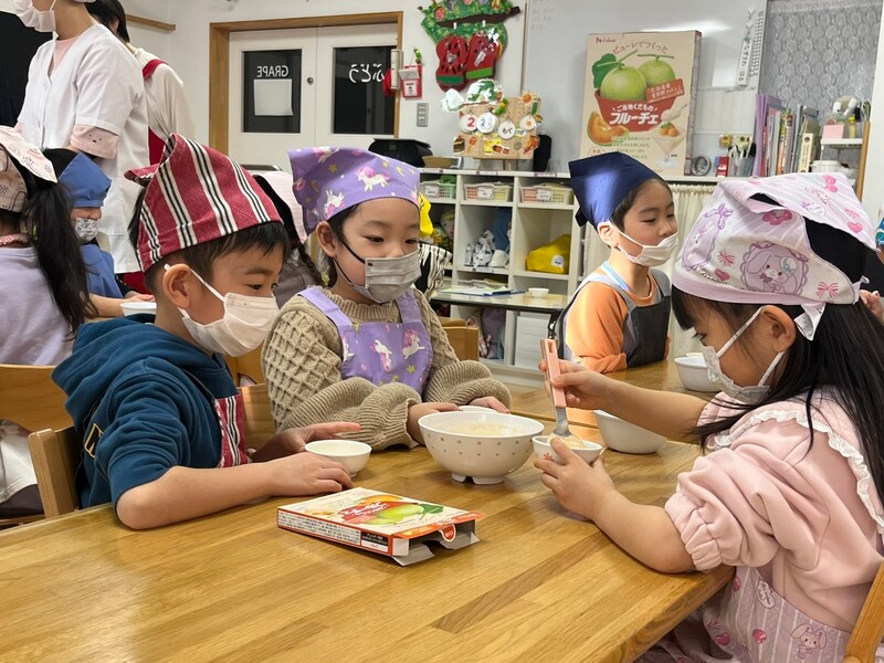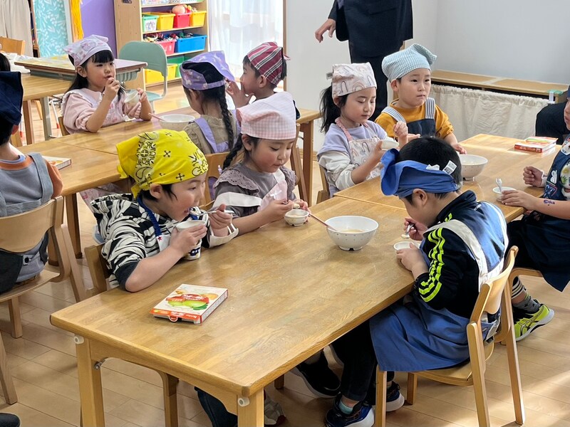 自分たちの手で作り上げたデザートに、子どもたちは目を輝かせ、完成したフルーチェを試食する際には「おいしい!」という歓声があがりました。 富良野メロンの豊かな風味と自分たちで作った特別な味にこぼれる満面の笑み。 この体験は、子どもたちの食への関心を高め、食の楽しさと大切さを知る貴重な機会となりました。