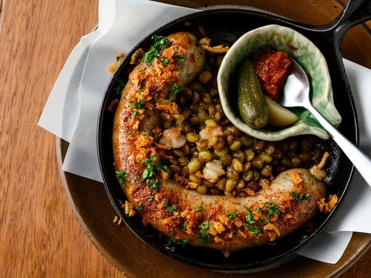 クラフトビールやワインとともに『鉄板焼・30cmソーセージ』