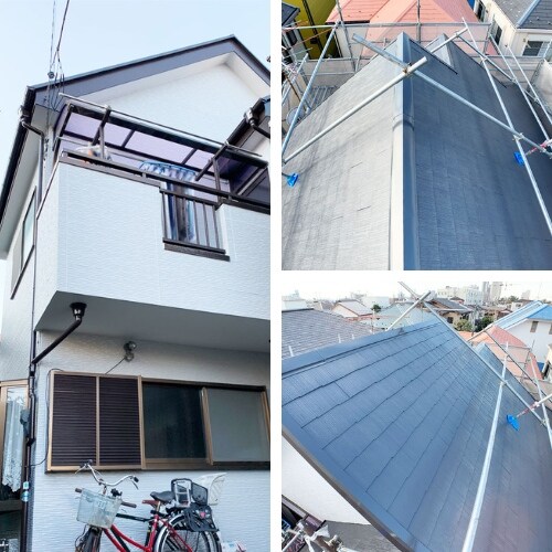 被害を受けたのは棟部分のみでしたが、傾斜がきつく足場を設置する必要があったため、修繕に加えて塗装によるメンテナンスも行いました。