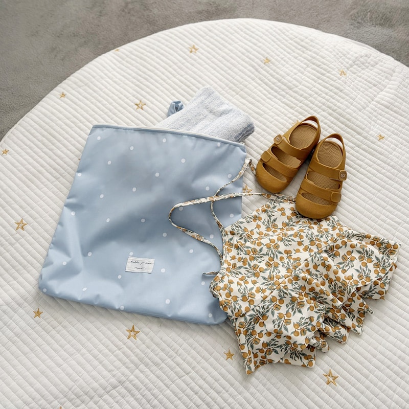 そんな毎日に大活躍しているのが、濡れたものも気兼ねなく入れられる「kukka ja puu 防水ポーチ」。30×30cmの使いやすいサイズ感で、子どもでも扱いやすく、デザインもかわいいのが嬉しいところ。