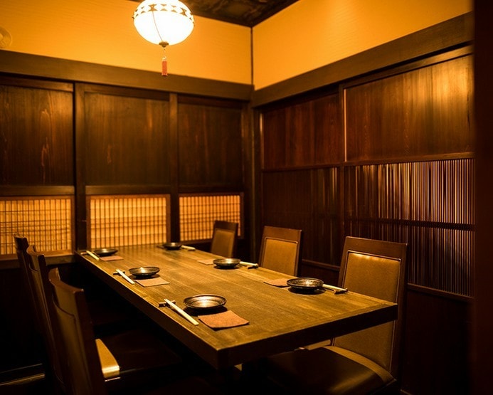 恵比寿駅より徒歩3分、閑静な恵比寿神社の裏手のビル4階にある和食店です。4階にはカウンター席やテーブル席があり、内階段を上がった5階には個室を複数完備。個室はテーブル席と掘りごたつの座敷席があり、座敷席は扉をはずして大人数での利用もできます。趣のある建具や調度品が落ち着いた雰囲気。