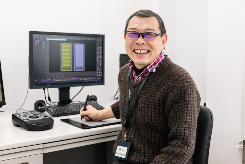 「自分で考えたものをこうして形にできるところが、この仕事のおもしろさですね」。この道30年のベテラン、ニット・テキスタイルデザイナーの清野光一(せいの こういち)さんは、プログラミングの様子を実演しながら語ってくれました。