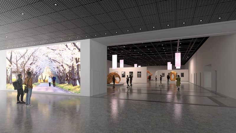 地上6階、地下3階から成る館内には、着席最大約1,200席を備えるライブ・パフォーマンス空間、約1,500平方メートルの展示室、約300平方メートルのイベントスペース、約100畳の畳スペースを設ける。各フロアはゆるやかなスロープでつながっており、歩いて屋上庭園まで移動することができる。