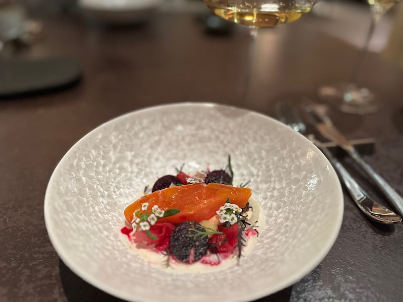 エグゼクティブシェフKazuと妻Yukiが手がける料理は、「白馬湧水活〆信州サーモンと雪中ビーツ」や「白馬育ちゆめかおりのパスタ」など、テロワールを感じる食材を巧みに活かした白馬ならではのイタリアン。