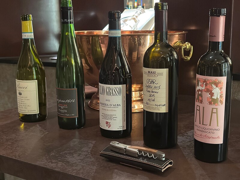 ソムリエによる、ワインのセレクトも幅広い。エントランスには、バーを併設。