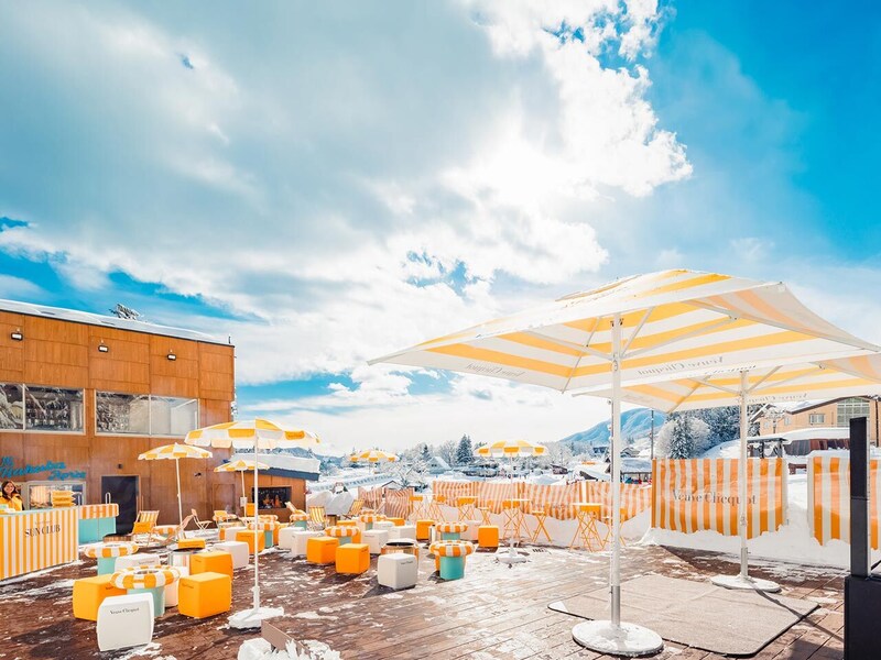 ゲレンデ真下にあるスキーイン・スキーアウト可能なプレミアムバー『Hakuba Après』では、「ヴーヴ・クリコ」とのコラボイベント「SUN CLUB by Veuve Clicquot」が開催中。